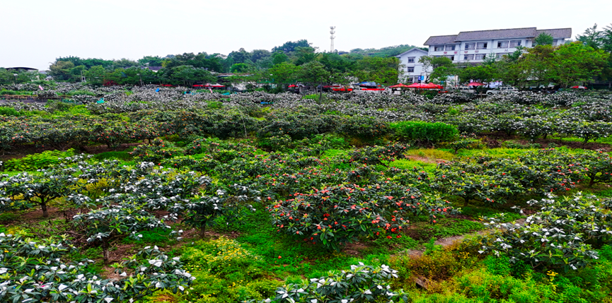 As early summer arrives in Chongqing, the hills of Huilongqiao Village in Guangyang Town are filled with the fragrance of ripening loquats. Covering over 3,000 mu, the Guangyang Jiangnan Loquat Orchard has entered its peak harvest season. The renowned Da Wuxing loquat, known for its rich sweetness and bright golden hue, is now available for both in-person picking and nationwide delivery.