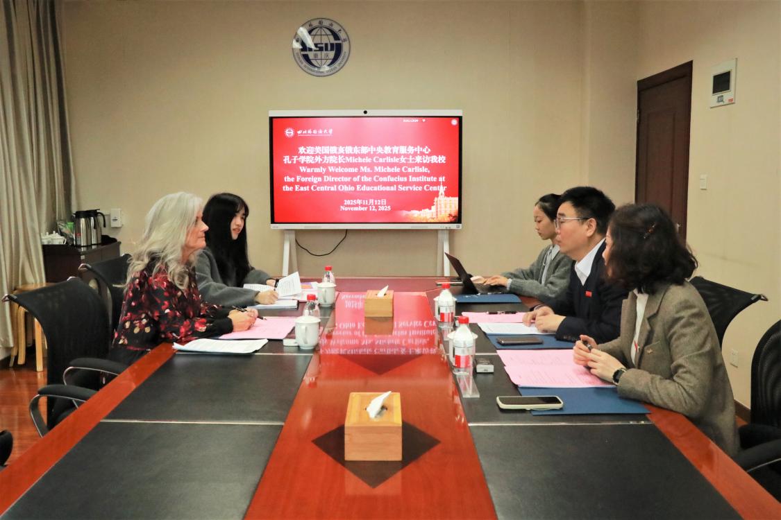 Sichuan International Studies University (SISU) welcomed a special guest from across the Pacific this week, as Michele Carlisle, director of the Confucius Institute at Ohio's Eastern Central Education Service Center, visited campus to discuss expanding cultural exchanges between the U.S. and China.