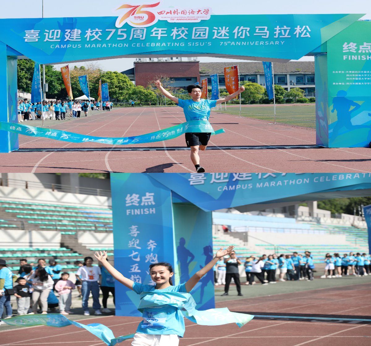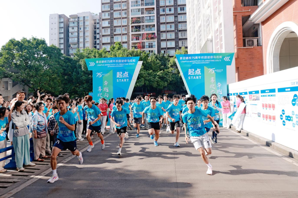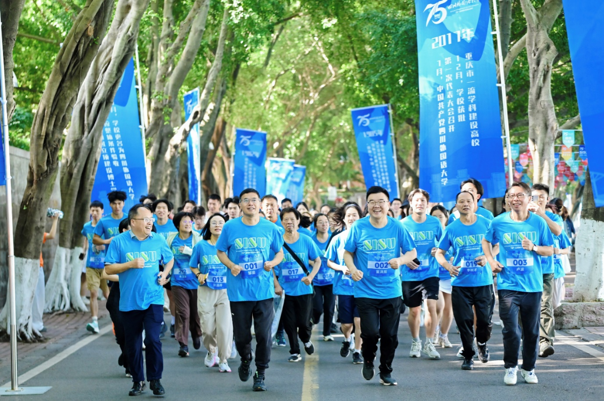 To celebrate the 75th anniversary of Sichuan International Studies University (SISU), a campus mini marathon themed “Celebrating 75 Years, Running Toward the Future” was held on the morning of May 11. The event was jointly organized by the University Youth League Committee, the Faculty Union, and the Department of Physical Education.